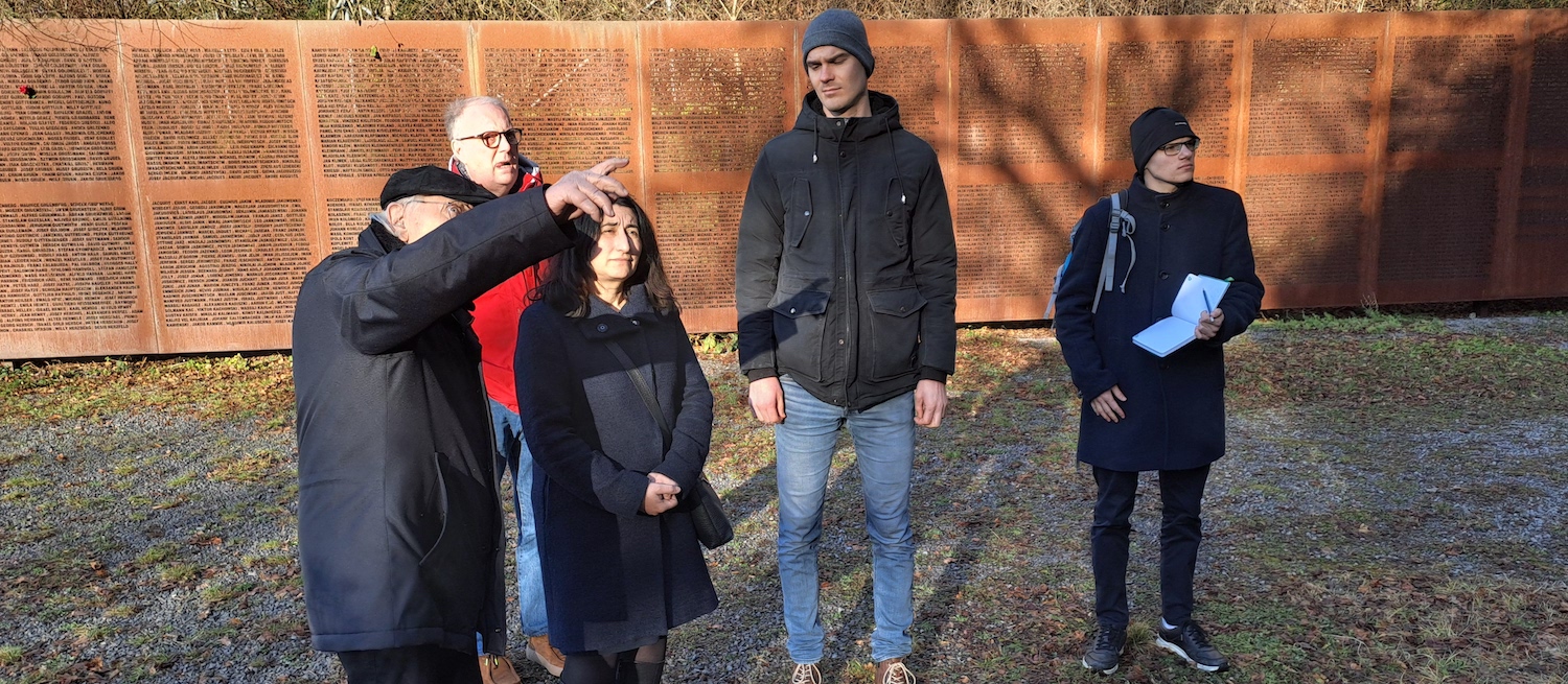 Bei ihrem Besuch der KZ-Gedenkstätte in Leonberg zeigte sich Muhterem Aras tief bewegt von den Worten des 96-jährigen Eberhard Röhm, dem Gründer der Gedenkstätteninitiative.